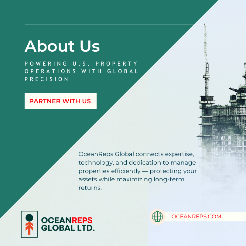 At OceanReps Global Ltd. we aim to be a leading force in real estate services, property preservation and maintenance and asset management across the U.S. and globally. Our mission is to deliver excellence, efficiency and innovation—maximizing asset value and building trust for clients, investors and communities alike.